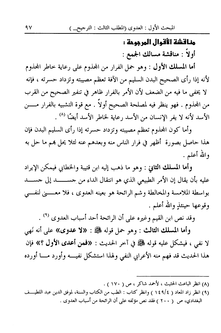 (¬٩) انظر زاد المعاد (٤/ ١٤٩) وانظر كتاب: الطب من الكتاب والسنة، لموفق الدين عبد اللطيف البغدادى، ص (٢٠٠) فقد نص مولفه على أن الرائحة من أسباب العدوى.