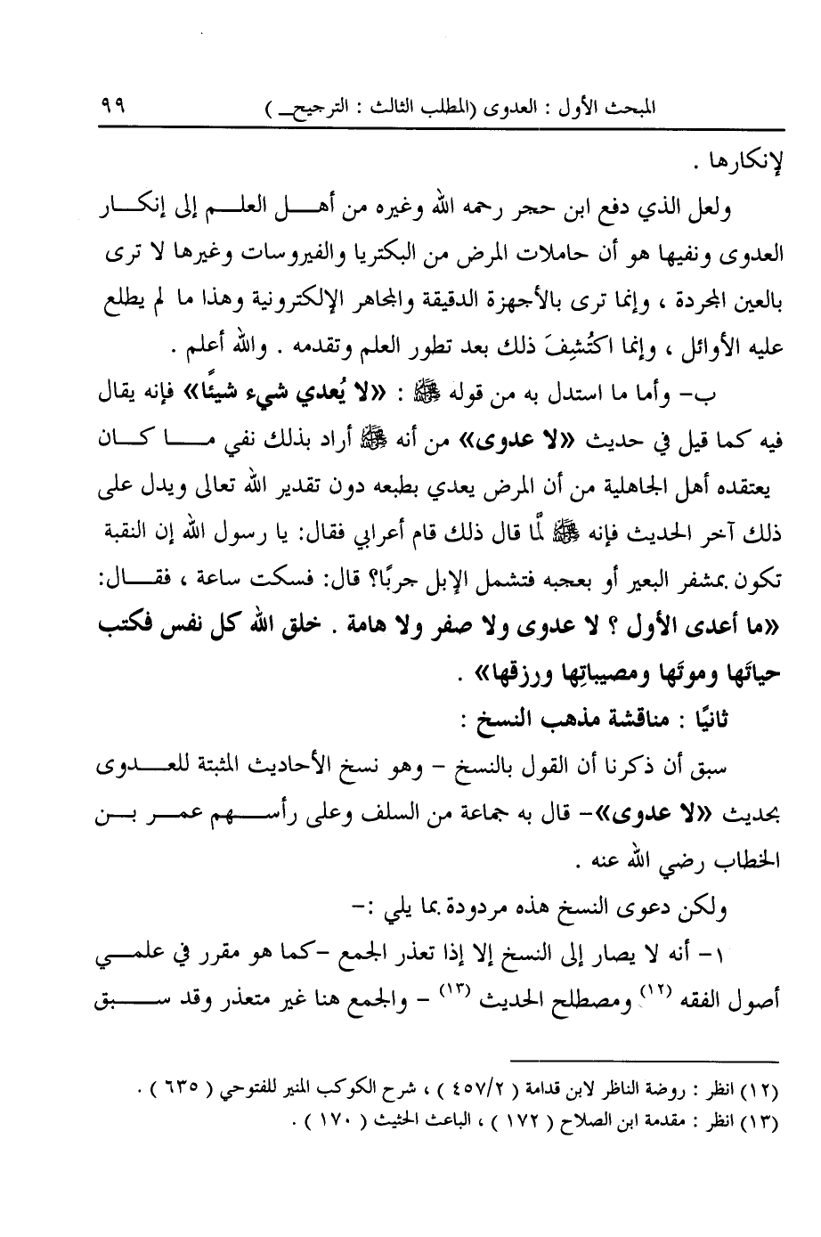 ١ - أنه لا يصار إلى النسخ إلا إذا تعذر الجمع -كما هو مقرر في علمي أصول الفقه (¬١٢) ومصطلح الحديث (¬١٣) - والجمع هنا غير متعذر وقد سبق