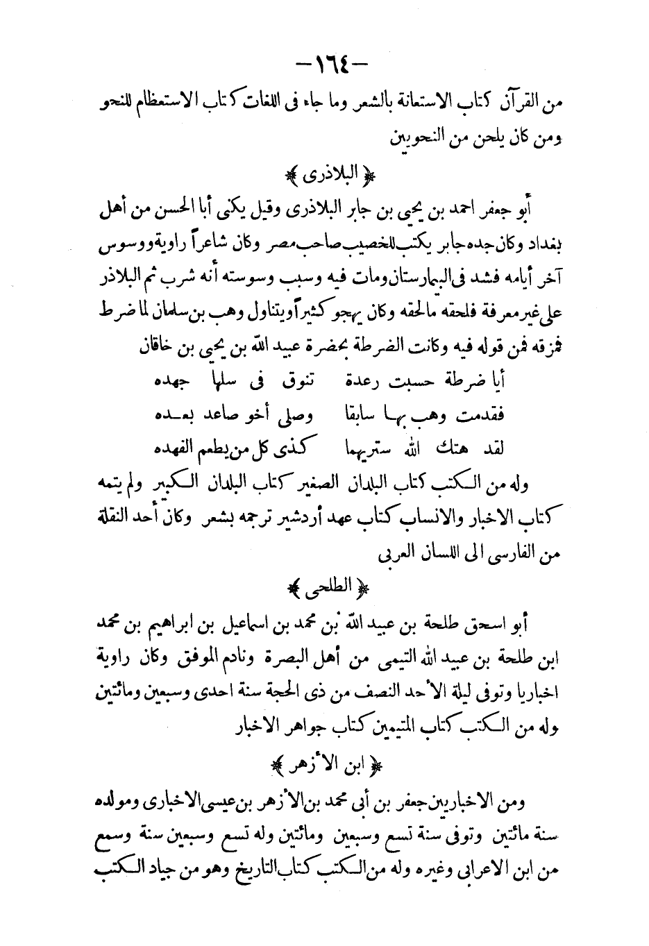 الفصل الأخير فيه: من ترك قول الشعراء في الجاهلية تكبرا في الإسلام تدينا ومن ترك المديح ترفعا والهجاء تكرما والغزل تعففا ومن أنفذ شعره في معنى واحد كالسيد بن محمد الحميري والعباس بن الأحنف ومن جرى مجراهما كتاب الأزمنة عدد ورقه ألفا ورقة فيه أحوال الفصول الأربعة الصيف والشتاء الاعتدالين والحر والبرد