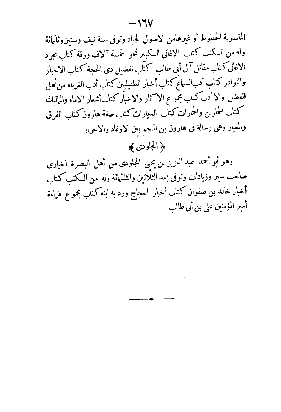 أخبار أبي محمد بن يزيد المهلبي: أبو محمد الحسن بن محمد الوزير لمعز الدولة شاعر بليغ بقية الزمان في وقته وتوفي وله من الكتب كتاب ديوان رسائل وتوقيعات ديوان شعره وهو قليل.