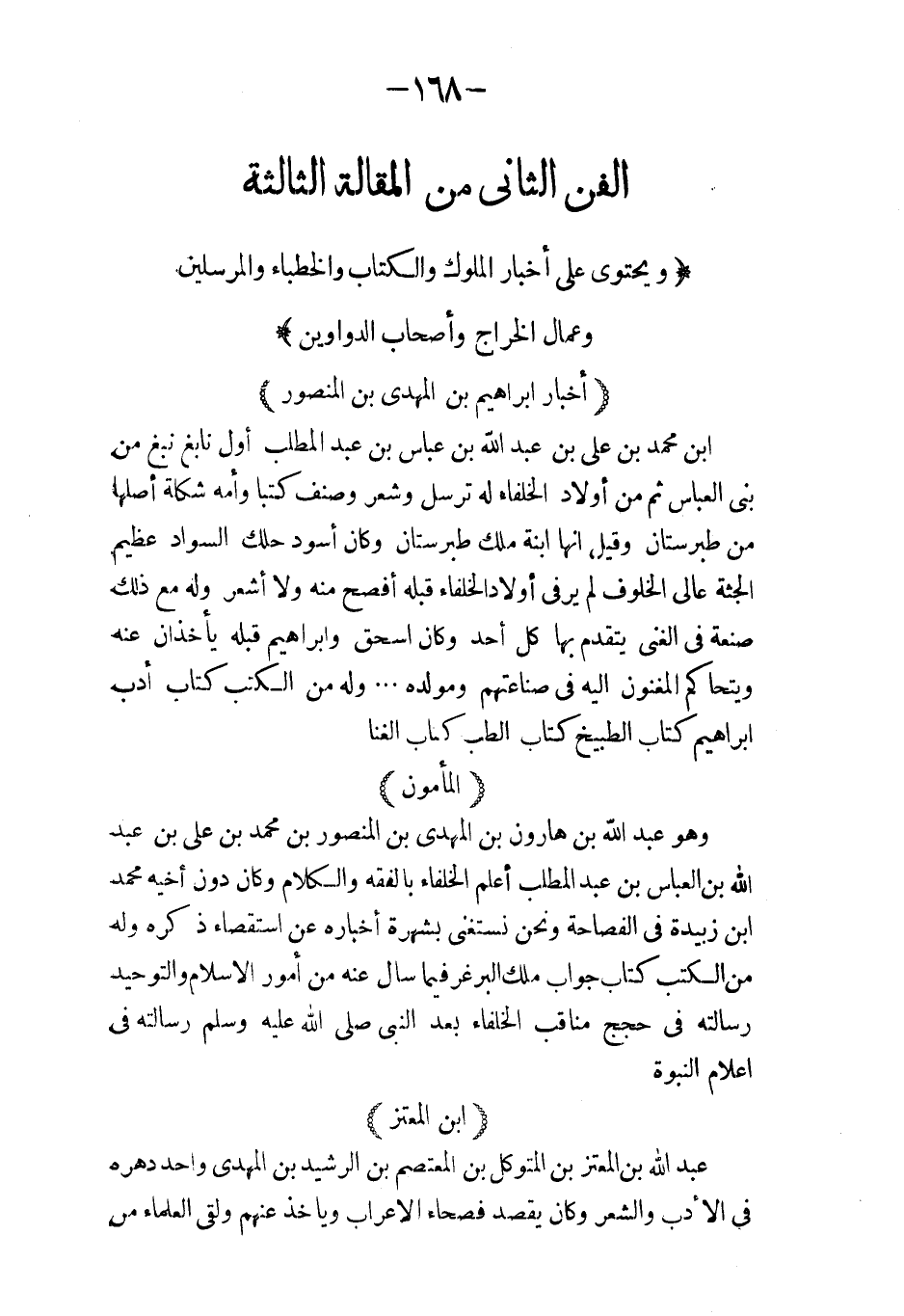 ابن بشار: احمد بن محمد بن سليمان بن بشار الكاتب أستاذ أبي عبد الله الكوفي الوزير وكان أحد افاضل الكتاب بلاغة وصناعة وله من الكتب كتاب الخراج كبير ورأيت المسودة بخطه نحو ألف ورقة كتاب البيوتات والمنادمة بخطه.