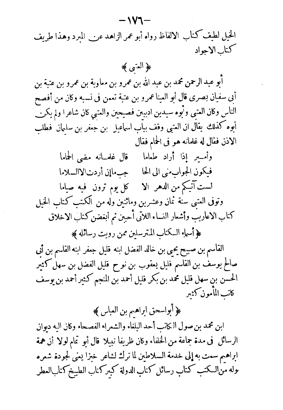 أبو منصور أبان حسين: اسم أبي منصور أبان حسيس بن وريد بن كاد بن مهابنداد حساس بن فروخ داد بن استاد بن مهر حسيس بن يزدجرد وكان يحيى ابنه مولى المأمون وكنيته أبو علي وكان اولا متصلا بالفضل بن سهل يعمل برأيه في أحكام النجوم فلما حدثت على الفضل الحادثة اجتباه المأمون ورغبه في الإسلام فاسلم على يده واختصه وتوفي يحيى في خروجه إلى طرسوس ودفن بحلب في مقابر قريش فقبره هناك مكتوب عليه وله من الولد محمد علي وسعيد والحسن فاما محمد فكان حسن الأدب حسن البلاغة فصيح اللسان وله كتب مدونة وأخبار مشهورة فمن كتبه كتاب أخبار الشعراء وله معرفة بالغناء والنجوم واتصل علي بن يحيى بمحمد بن إسحاق بن إبراهيم المصعي ثم اتصل بالفتح بن خاقان وعمل له خزانة حكمة نقل إليها من كتبه وومما استكتبه الفتح أكثر مما اشتملت عليه خزانة حكمة قط وتوفي آخر أيام المعتمد ودفن بسر من رأى وله من الولد أحمد أبو عبسى عبد الله أبو القاسم يحيى أبو احمد هارون أبو عبد الله ولهارون كتب كثيرة.
