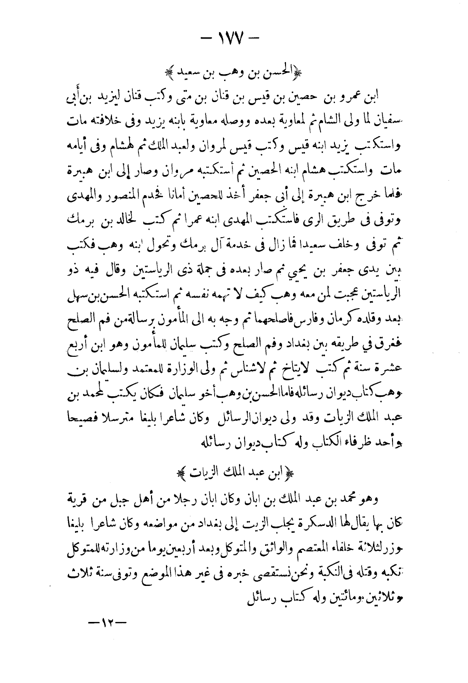 نادم المتوكل من خاصة ندمائه ومتقدمهم عنده وخص به وبمن بعده من الخلفاء إلى أيام المعتمد وكان راوية للاشعار والاخبار شاعرا محسنا قد أخذ عن إسحاق وشاهده وله صنعة مقدما عند الخلفاء يجلس بين يدي أسرتهم ويقصون اليه باسرارهم ويامنونه على اخبارهم وتوفي سنة خمس وسبعين وله من الكتب كتاب الشعراء القدماء والاسلامية روى فيه عن محمد بن سلام ومحمد بن عمر الجرجاني وغيرهما كتاب أخبار إسحاق بن إبراهيم كتاب الطبيخ.