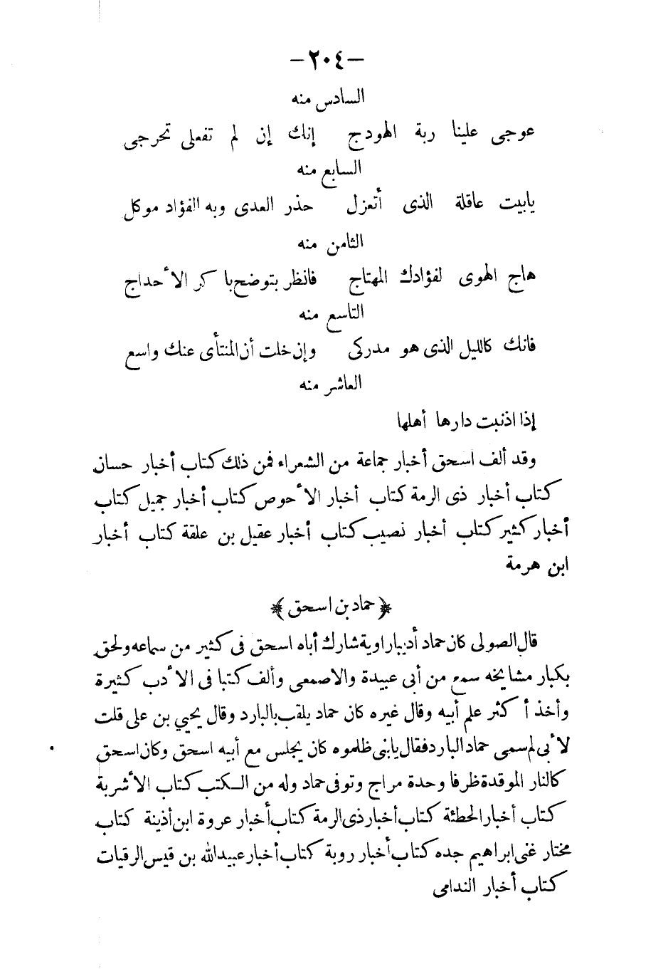مدرك بن محمد الشيباني مائتا ورقة أبو بكر بن العلاني وعمل شعره بعض اهلله مع اخباره مع من مدحه ومقداره أربعمائة ورقة أبو طاهر سندوك بن حبيبة واسطي جيد الشعر خمسمائة ورقة التجيبي أبو بكر مائة ورقة القراطيسي واسمه ثلاثمائة ورقة السلامي من أهل البطيحة دون المائتي ورقة أبو الحسن مطبوع العبدوسي واسمه