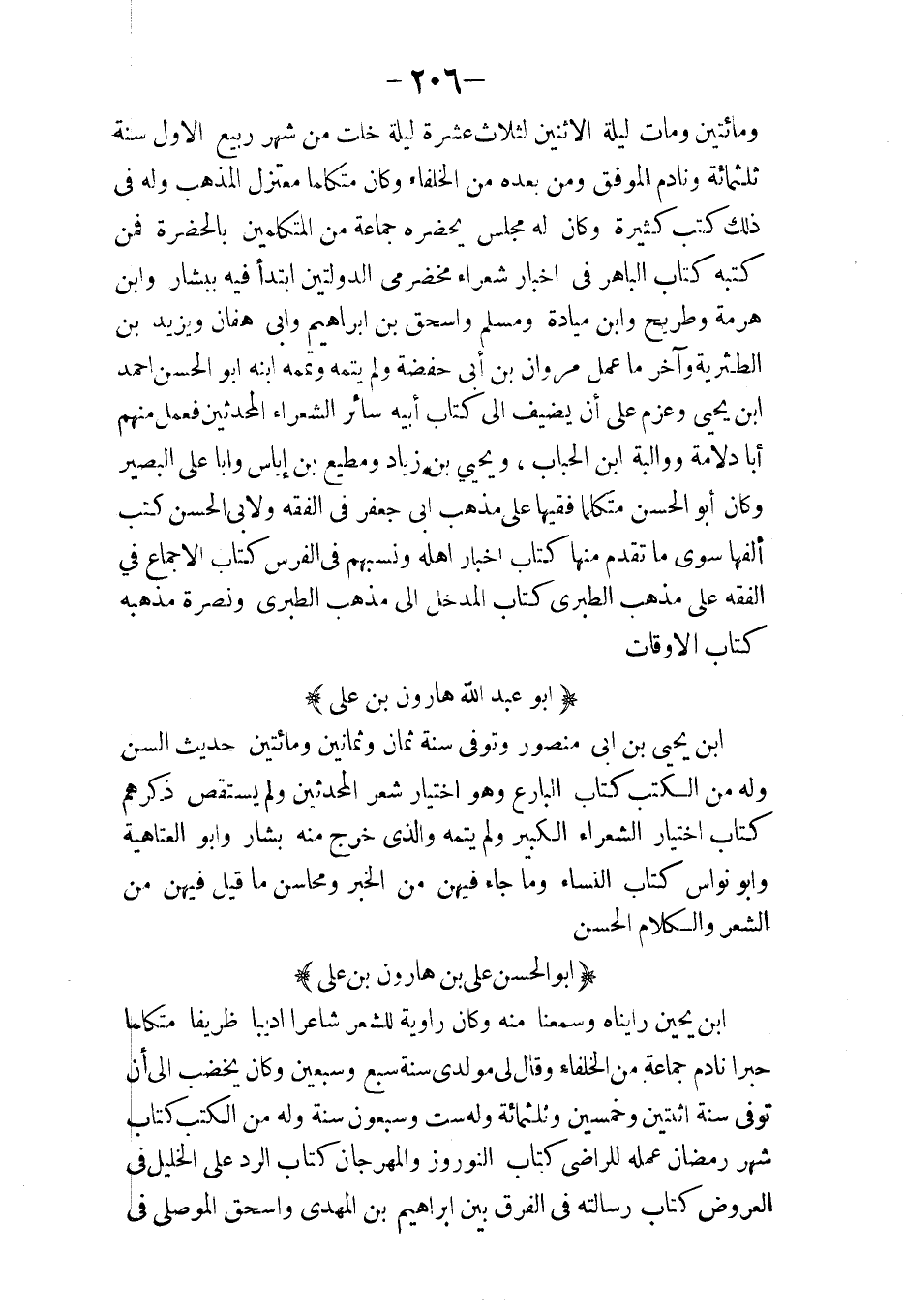 أبو الحسن بن النمح: واسمه من أهل بغداد أطال المقام بالموصل وكان متكلما شاعرا ومات بالموصل وعمل شعره قبل موته نحو خمسمائة ورقة.