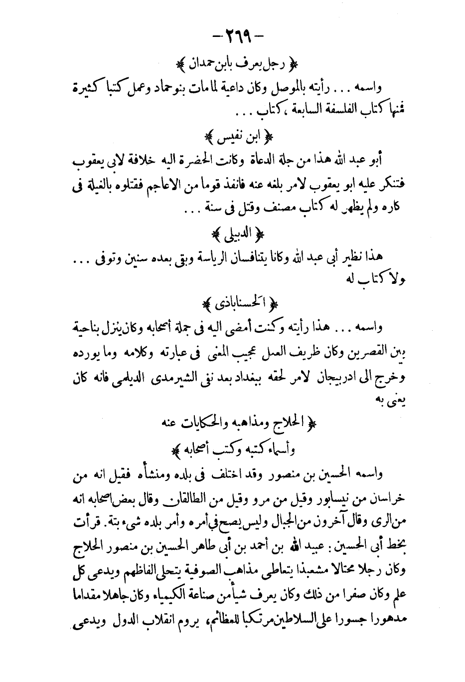 ابن الخلال: ويكنى أبا الطيب وله من الكتب كتاب إبطال القياس كتاب النكت كتاب نعت الحكمة في أصول الفقه يحتوي على عدة كتب.