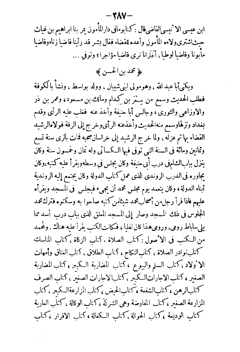 الطبري وأصحابه: قال محمد بن أسحق النديم قال أبو الفرج المعافا بن زكريا النهرواني هو أبو جعفر محمد بن جرير بن يزيد بن خالد الطبري الآملي عمالة علامة وقته وإمام عصره وفقيه زمانه ولد بآمل سنة 224 ومات في شوال سنة 31 وله 87 سنة أخذ الحديث عن الشيوخ الفضلاء مثل محمد بن حميد الرازي وأبي جريج وأبي كريب وهناد بن السرى وعباد بن يعقوب وعبيد الله بن إسماعيل الهباري وإسماعيل بن موسى وعمران بن موسى القزاز وبشر بن معاذ العقدي وقرأ الفقه على داود وأخذ فقه الشافعي عن الربيع بن سليمان بمصر وعن الحسن بن محمد الزعفراني ببغداد وأخذ فقه مالك عن يونس بن عبد الأعلى وبني عبد الحكم محمد وعبد الرحمن وسعد وابن أخي وهب وأخذ فقه أهل العراق عن أبي مقاتل بالري وأدرك الأسانيد العالية بمصر والشام والعراق والكوفة والبصرة والري وكان متفننا في جميع العلوم علم القرآن والنحو والشعر واللغة والفقه كثير الحفظ قال لي أبو أسحق بن محمد بن أسحق أخبرني الثقة انه رأى أبا جعفر الطبري بمصر يقرأ عليه شعر الطرماح أو الحطيئة الشك مني ورأيت انا بخطه شيئا كثيرا من كتب اللغة والنحو والشعر والقبائل وله مذهب في الفقه اختاره لنفسه وله في ذلك عدة كتب منها كتاب اللطيف في الفقه يحتوي على عدة كتب على مثال كتب الفقهاء في المبسوط وعدد كتب اللطيف كتاب البسيط في الفقه ولم يتمه والذي خرج منه كتاب الشروط الكبير كتاب المحاضر والسجلات كتاب الوصايا كتاب أدب القاضي كتاب الطهارة كتاب الصلاة كتاب الزكاة كتاب اللطيف في الفقه ويحتوي كتاب التاريخ ويضاف اليه القطعان وآخر ما أمل منه إلى سنة 302 وها هنا قطع وقد اختصر هذا الكتاب وحذف أسانيده جماعة منهم رجل يعرف بمحمد بن سليمان الهاشمي وآخر كاتب يعرف ومن أهل الموصل أبو الحسين الشمشاطي المعلم ورجل يعرف بالسليل بن أحمد وقد ألحق به جماعة من حيث قطع