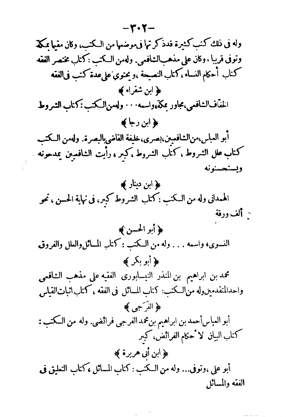 اصطفن القديم ونقل لخالد بن يزيد بن معاوية كتب الصنعة وغيرها البطريق وكان في أيام المنصور وأمره بنقل أشياء من الكتب القديمة ابنه أبو زكريا يحيى بن البطريق وكان في جملة الحسن بن سهل الحجاج بن مطر فسر للمأمون وهو الذي نقل المجسطي واقليدس بن ناعمة واسمه عبد المسيح بن عبد الله الحمصي الناعمي سلام الأبرش من النقلة القدماء في أيام البرامكة ويوجد بنقله السماع الطبيعي كذا حكى سيدنا أبو القاسم عيسى بن علي بن عيسى أيده الله حبيب بن بهريز مطران الموصل فسر للمامون عدة كتب زروبا بن ماجوه الناعمي الحمصي هلال بن أبي هلال الحمصي تذاري فثيون أبو نصر أوى بن أيوب بسيل المطران أبو نوح بن الصلت اسطاث جيرون اصطفن بن بأسيل بن رابطة تيوفيلي شملي عيسى بن نوح قويري واسمه إبراهيم ويكنى أبا إسحاق تذرس السنقل داريع الراهب هيابثيون صليبا أيوب الرهاوي ثابت بن قمع أيوب وسنمعان فسرا زيج بطلميوس لمحمد بن خالد بن يحيى بن برمك وغير ذلك من الكتب القديمة بأسيل وكان يخدم ذا اليمنيين بن شهدي