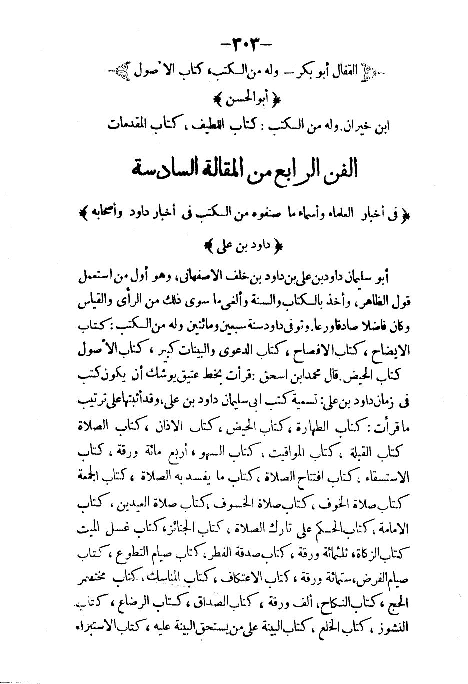 ابن المقفع وقد مضى خبره في موضعه آل نوبخت أكثرهم وقد مضى ذكرهم ويمضي فيما بعد ان شاء الله تعإلى موسى ويوسف ابنا خالد وكانا يخدمان داود بن عبد الله بن حميد بن قحطبة وينقلان له من الفارسية إلى العربية التميمي واسمه علي بن زياد ويكنى أبا الحسن نقل من الفارسي إلى العربي فمما نقل زيج الشهريار الحسن بن سهل ويمر ذكره في موضعه من أخبار المنجمين البلاذري احمد بن يحيى بن جابر وقد مضى ذكره وكان ناقلا من اللسان الفارسي إلى العربي جبلة بن ن سالم كاتب هشام وقد مضى ذكره وكان ناقلا إلى العربي من الفارسي إسحاق بن يزيد نقل من الفارسي إلى العربي فمما نقل كتاب سيرة الفرس المعروف باختيار نامه ومن نقلة الفرس محمد بن الجهم البرمكي هشام بن القاسم موسى بن عيسى الكردي زادويه بن شاهويه الأصفهاني محمد بن بهرام بن مطيار الأصفهاني بهرام بن مردان شاه موبد مدينة نيسابور من بلد فارس عمر بن الفرخان ونحن نستقصي ذكره في المصنفين.