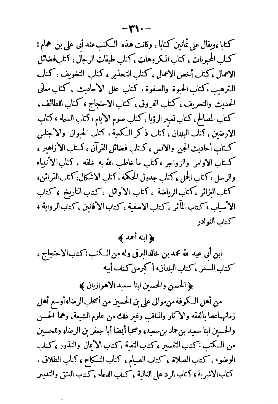 يحيى بن عدي ولم يوجد شرح المقالة الثالثة من نص كلام أرسطاليس فاما المقالة الرابعة ففسرها في ثلاث مقالات والموجود منها المقالة الأولى والثانية وبعض الثالثة إلى الكلام في الزمان ونقل ذلك فسطا والظاهر الموجود نقل الدمشقي والمقالة الخامسة من كلام أرسطاليس في مقالة واحدة ونقل ذلك قسطا بن لوقا والمقالة السادسة في مقالة واحدة والموجود منها النصف وأكثر قليلا والمقالة السابعة في مقالة واحدة ترجمه قسطا والمقالة الثامنة في مقالة واحدة والموجود منها أوراق يسيرة. الكلام على السماع الطبيعي بتفسير يحيى النحوي الإسكندراني قال محمد بن إسحاق ما ترجمه قسطا من هذا الكتاب فهو تعاليم وما ترجمه عبد المسيح بن ناعمة فهو غير تعاليم والذي ترجم قسطا النصف الأول وهو أربع مقالات والنصف الآخر بن ناعمة أربع مقالات.