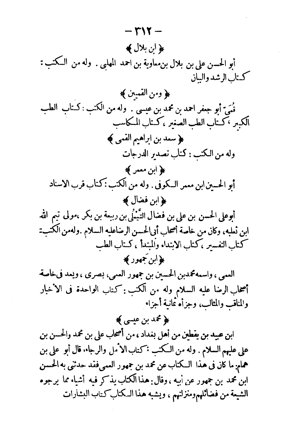 الإسكندر الافروديسي: وكان في أيام ملوك الطوائف بعد الإسكندر ورأى جالينوس واجتمع معه وكان يلقب جالينوس برأس البغل وبينه وبينه مشاغبات ومخاصمات فقفقد ذكرنا شرحه لكتب أرسطاليس في ذكرنا أرسطاليس قال أبو زكريا يحيى بن عدي ان شرح الإسكندر للسماع كله ولكتاب البرهان رأيته في تركة إبراهيم بن عبد الله الناقل النصراني وان الشرحين عرضا علي بمائة دينار وعشرين دينارا فمضيت لأحتال في الدنانير ثم عدت فاصبت القوم قد باعوا الشرحين في جملة كتب على رجل