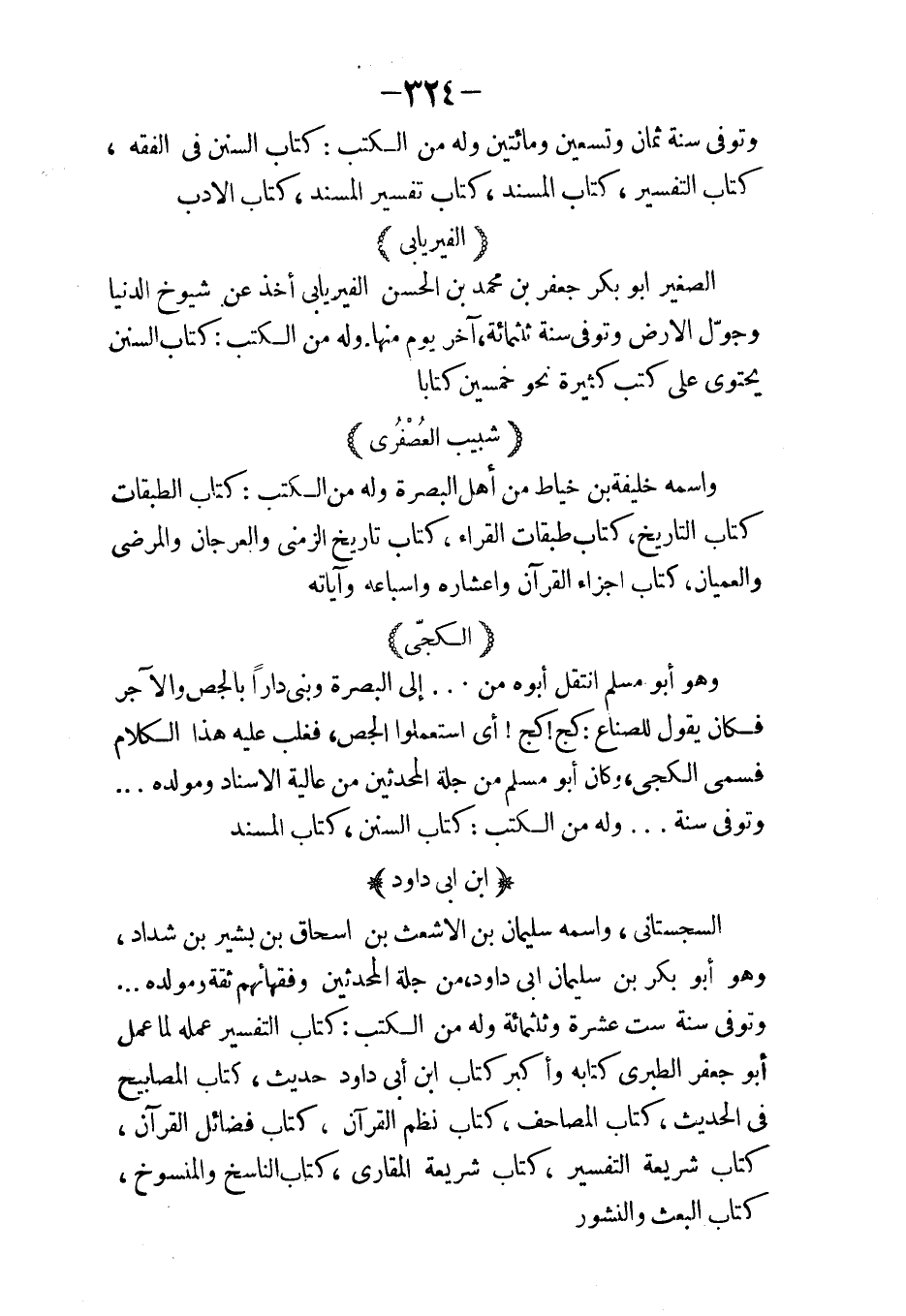 يحيى بن عدي: أبو زكريا يحيى بن عدي بن حميد بن زكريا المنطقي وإليه انتهت رياسة أصحابه في زماننا قرأ على أبي بشر متى وعلى أبي نصر الفارابي وعلى جماعة وكان أوحد دهره ومذهبه من مذاهب النصاري اليعقوبية قال لي يوما في الوراقين وقد عاتبته على كثرة نسخه فقال من أي شيء تعجب في هذا الوقت من صبري قد نسخت بخطي نسختين من التفسير للطبري وحملتهما إلى ملوك الأطراف وقد كتبت من كتب المتكلمين مالا يحصى ولعهدي بنفسي وأنا أكتب في اليوم والليلة مائة ورقة وأقل وقال لي مولدي سنة وتوفى سنة وله من الكتب والتفاسير النقول كتاب تفسير كتاب طوبيقا لارسطاليس مقالته في البحوث الأربعة كتاب رسالته في نقض حجج كان أنفذها االرئيس في نصرة قول القائلين بأن الأفعال لله تعإلى والاكتساب للعبد2.