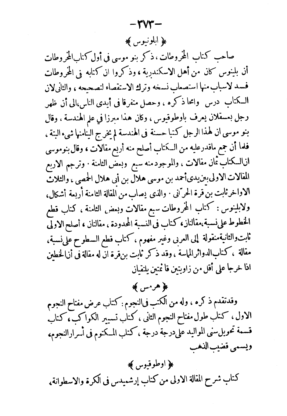 والكلبي صاحب خالد بن الوليد كتاب الزهري وابنة عمه الذين ساروا إلى هشام بن عبد الملك كتاب ديار وظميا كتاب ملك العيار وابنة عمه كتاب عنمة وازيهر وعمرو الملك كتاب الكردوحية وابنة الكاهن كتاب الاخوين العراقي والمدني كتاب المعلى وسينا كتاب المتجرد في النساء كتاب بدن وشادن كتاب حبيب العطار كتاب حسن واللص الاسرائيلي كتاب حافية ابنة هاشم الكندي كتاب المومل بن الشريف والصورة ومظعون الجني كتاب عامر ودعد جارية خالصة كتاب عروة بن عبد ياليل الطائي وابنة عمه كتاب الفتى العاشق وصاحبته كتاب المخنث والفتاة التي عشقته كتاب الفتى العاشق وهند المستعجلة كتاب الفتى العاشق الست وذات الخال كتاب الفتى الأحمق وشمسة عاشقته كتاب العاشق المجنون وسلم وجاريتها المخيلة.