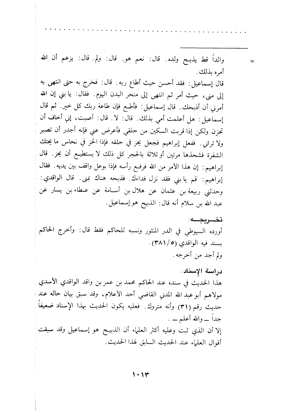إلا أن الذي ثبت وعليه أكثر العلماء أن الذبيح هو إسماعيل وقد سبقت أقوال العلماء عند الحديث السابق لهذا الحديث.