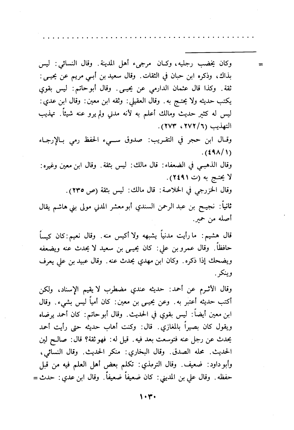 وقال الذهبي في الضعفاء: قال مالك: ليس بثقة. وقال ابن معين وغيره: لا يحتج به (ت 2491).