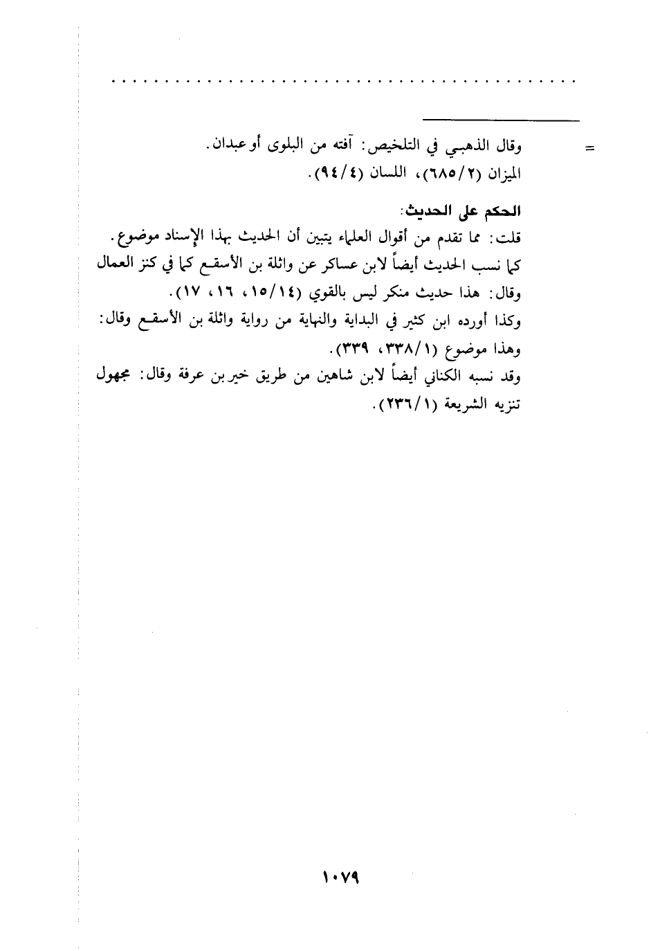 كما نسب الحديث أيضاً لابن عساكر عن واثلة بن الأسقع كما في كنز العمال وقال: هذا حديث منكر ليس بالقوي (15/ 14، 16، 17).