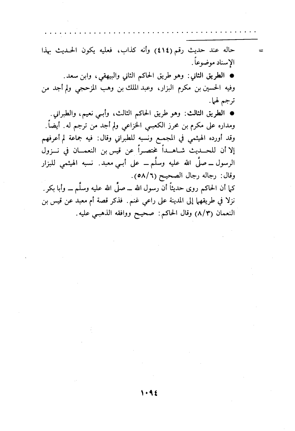 وقد أورده الهيثمي في المجمع ونسبه للطبراني وقال: فيه جماعة لم أعرفهم إلا أن للحديث شاهداً مختصراً عن قيس بن النعمان في نزول الرسول -صلى الله عليه وسلم- على أبي معبد. نسبه الهيثمي للبزار وقال: رجاله رجال الصحيح (6/ 58).