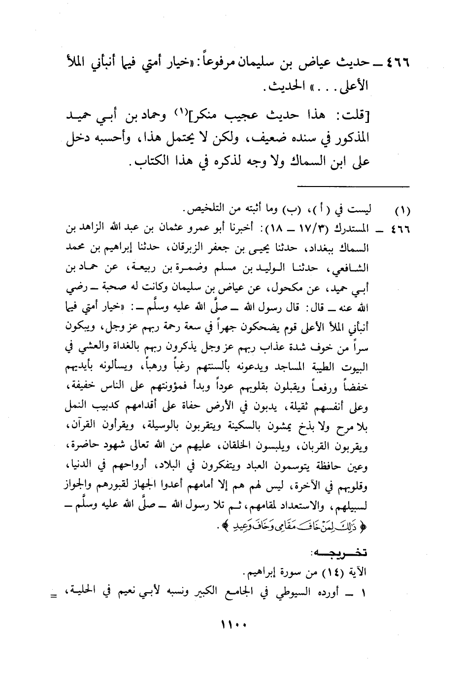 466 - حديث عياض بن سليمان مرفوعاً: "خيار أمتي فيما أنبأني الملأ الأعلى ... " الحديث.