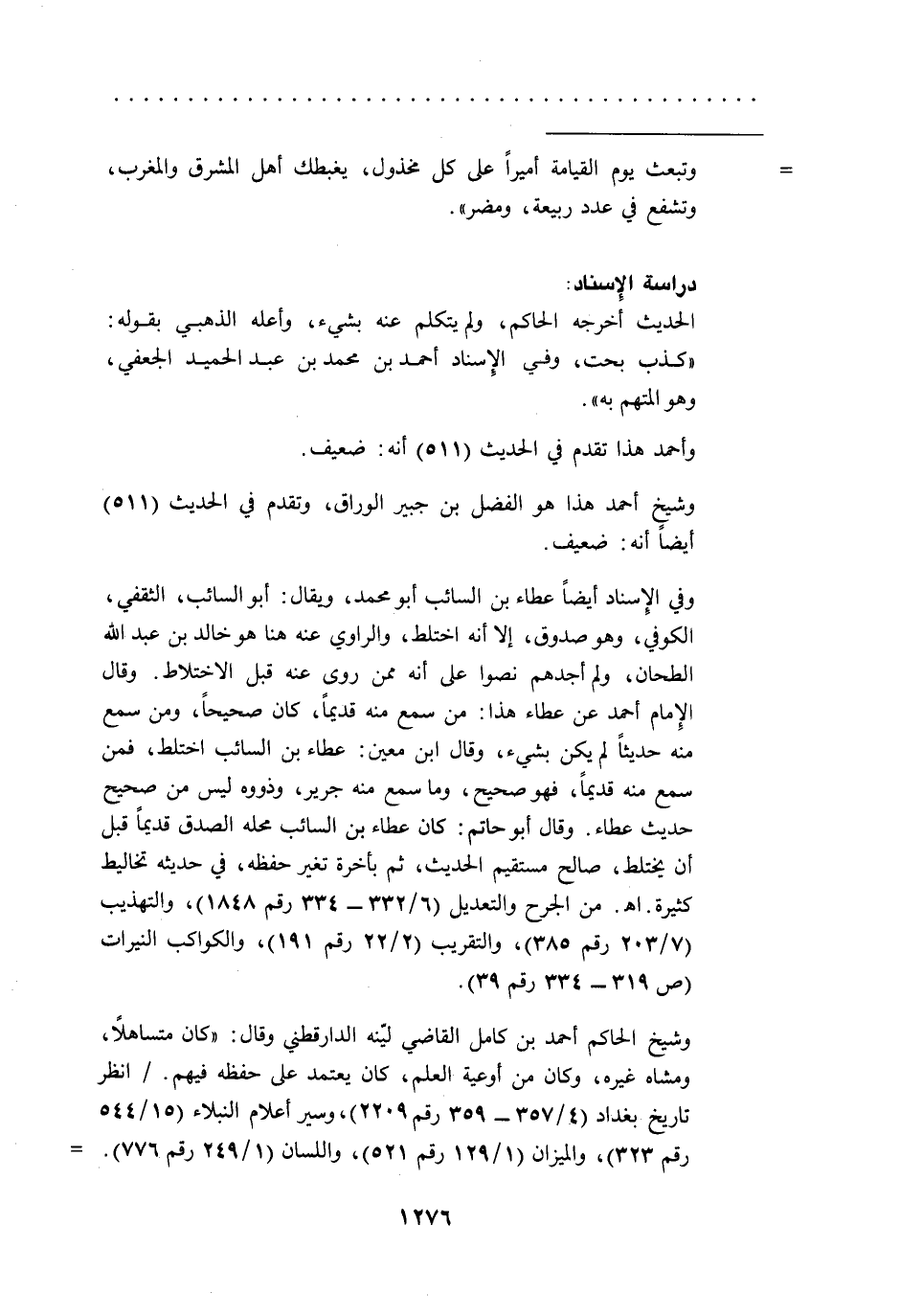 وشيخ الحاكم أحمد بن كامل القاضي ليّنه الدارقطني وقال: "كان متساهلاً، ومشاه غيره، وكان من أوعية العلم، كان يعتمد على حفظه فيهم./ انظر تاريخ بغداد (4/ 357 - 359 رقم 2209)، وسير أعلام النبلاء (15/ 544 رقم 323) والميزان (1/ 129رقم521) واللسان (1/ 249 رقم 776). =
