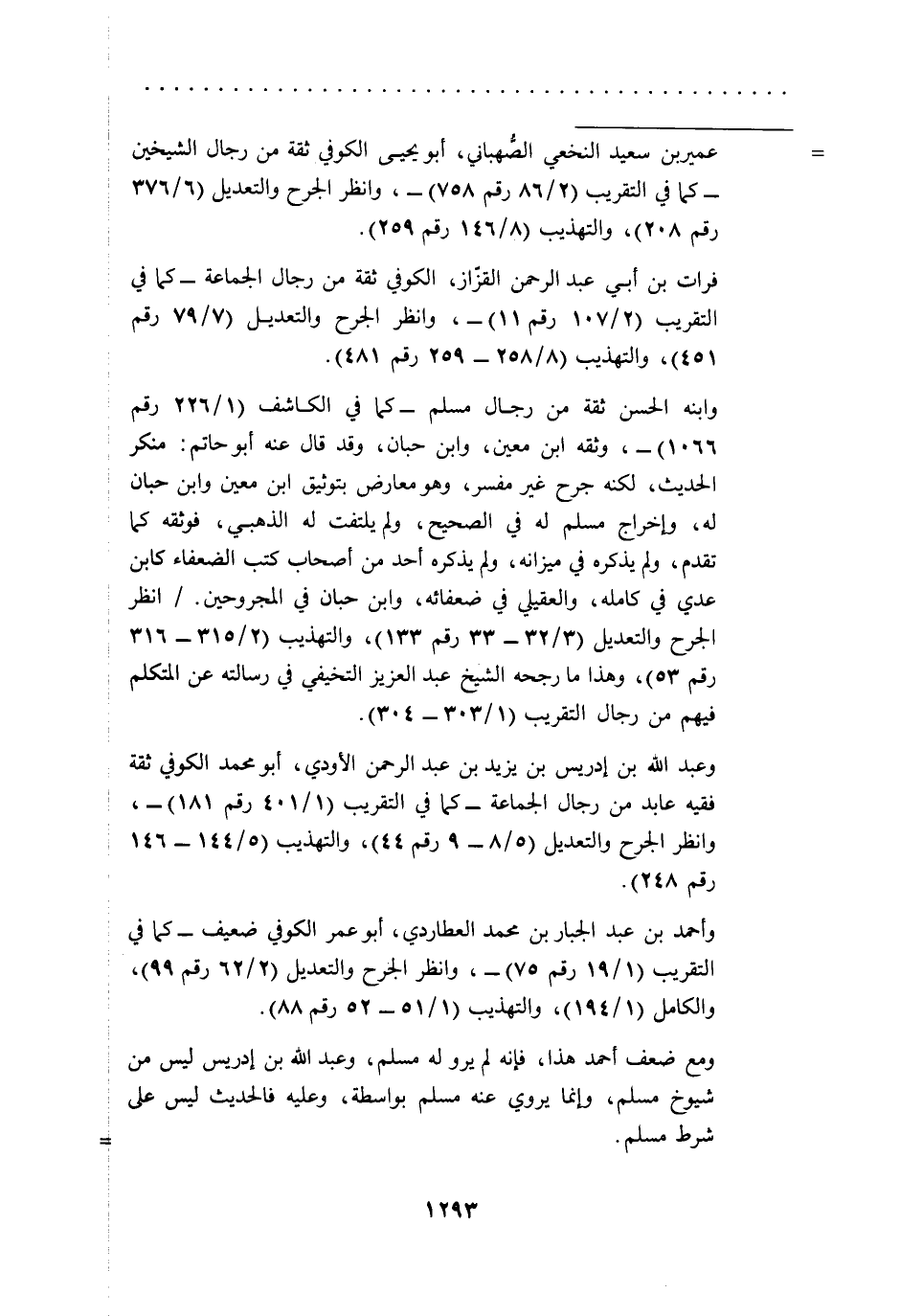 وعبد الله بن إدريس بن يزيد بن عبد الرحمن الأودي، أبو محمد الكوفي ثقة فقيه عابد من رجال الجماعة -كما في التقريب (1/ 401رقم 181) -، وانظر الجرح والتعديل (5/ 8 - 9 رقم 44)، والتهذيب (5/ 144 - 146 رقم 248).
