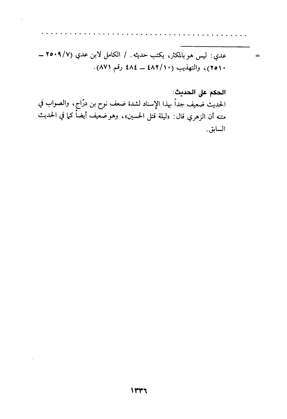 الحديث ضعيف جداً بهذا الإسناد لشدة ضعف نوح بن درّاج، والصواب في متنه أن الزهري قال: "ليلة قتل الحسين"، وهو ضعيف أيضاً كما في الحديث السابق.