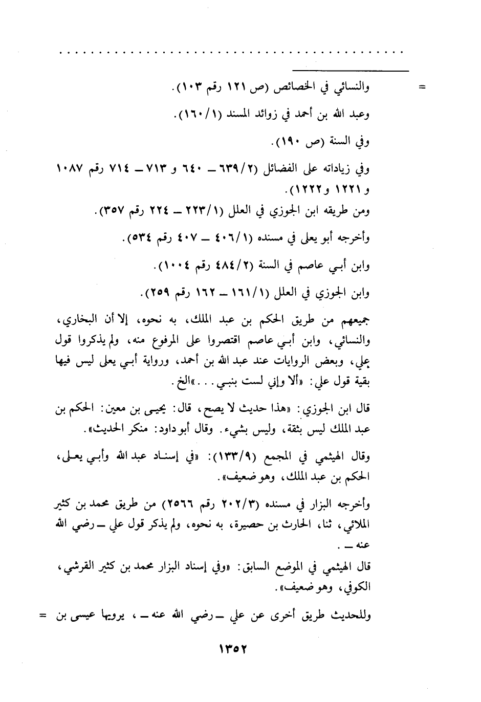 جميعهم من طريق الحكم بن عبد الملك، به نحوه، إلا أن البخاري، والنسائي، وابن أبي عاصم اقتصروا على المرفوع منه، ولم يذكروا قول علي، وبعض الروايات عند عبد الله بن أحمد، ورواية أبي يعلى ليس فيها بقية قول علي: "ألا وإني لست بنبي ... " الخ.