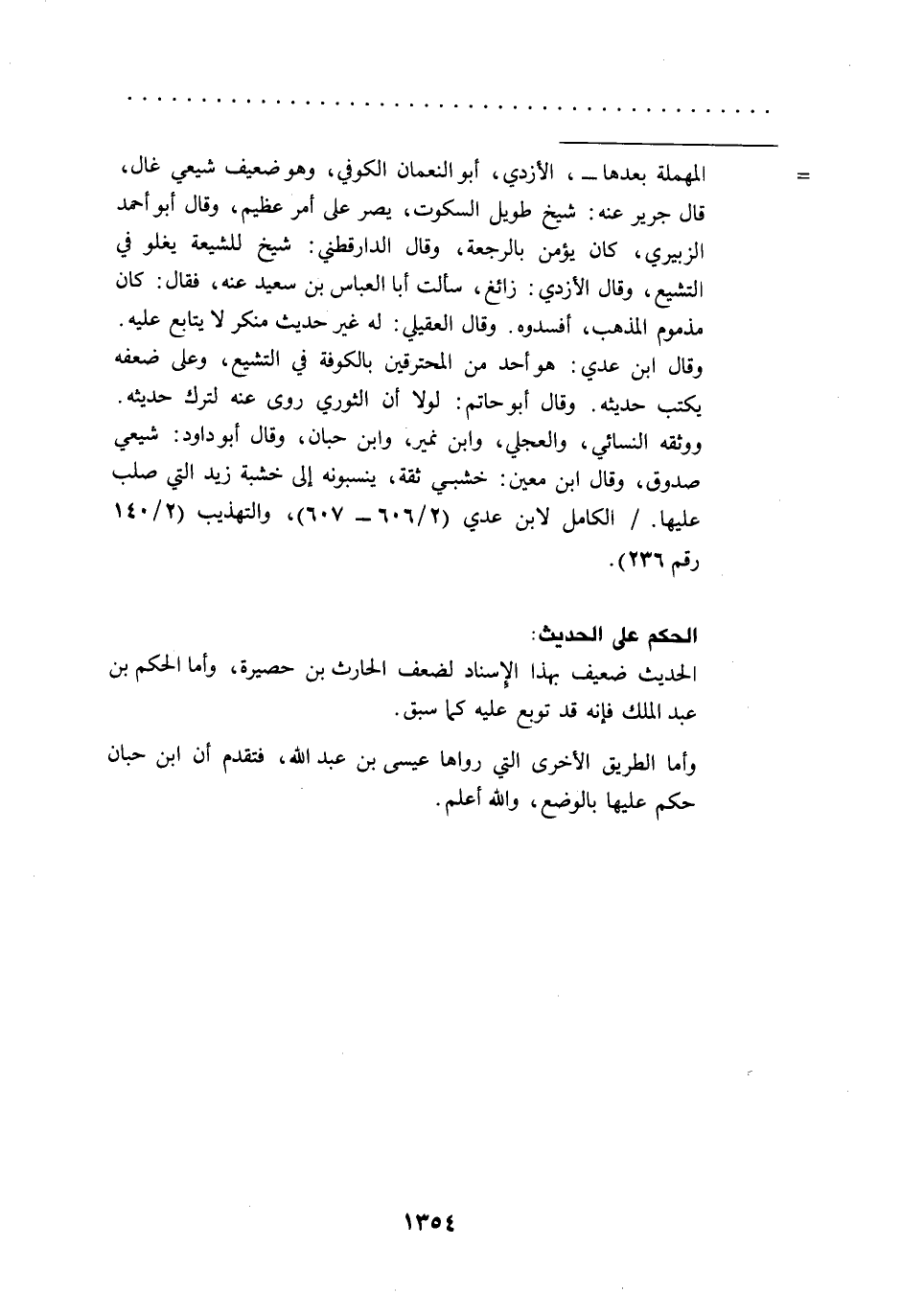 = المهملة بعدها-، الأزدي، أبو النعمان الكوفي، وهو ضعيف شيعي غال، قال جرير عنه: شيخ طويل السكوت، يصر على أمر عظيم، وقال أبو أحمد الزبيري، كان يؤمن بالرجعة، وقال الدارقطني: شيخ للشيعة يغلو في التشيع، وقال الأزدي: زائغ، سألت أبا العباس بن سعيد عنه، فقال: كان مذموم المذهب، أفسدوه. وقال العقيلي: له غير حديث منكر لا يتابع عليه.