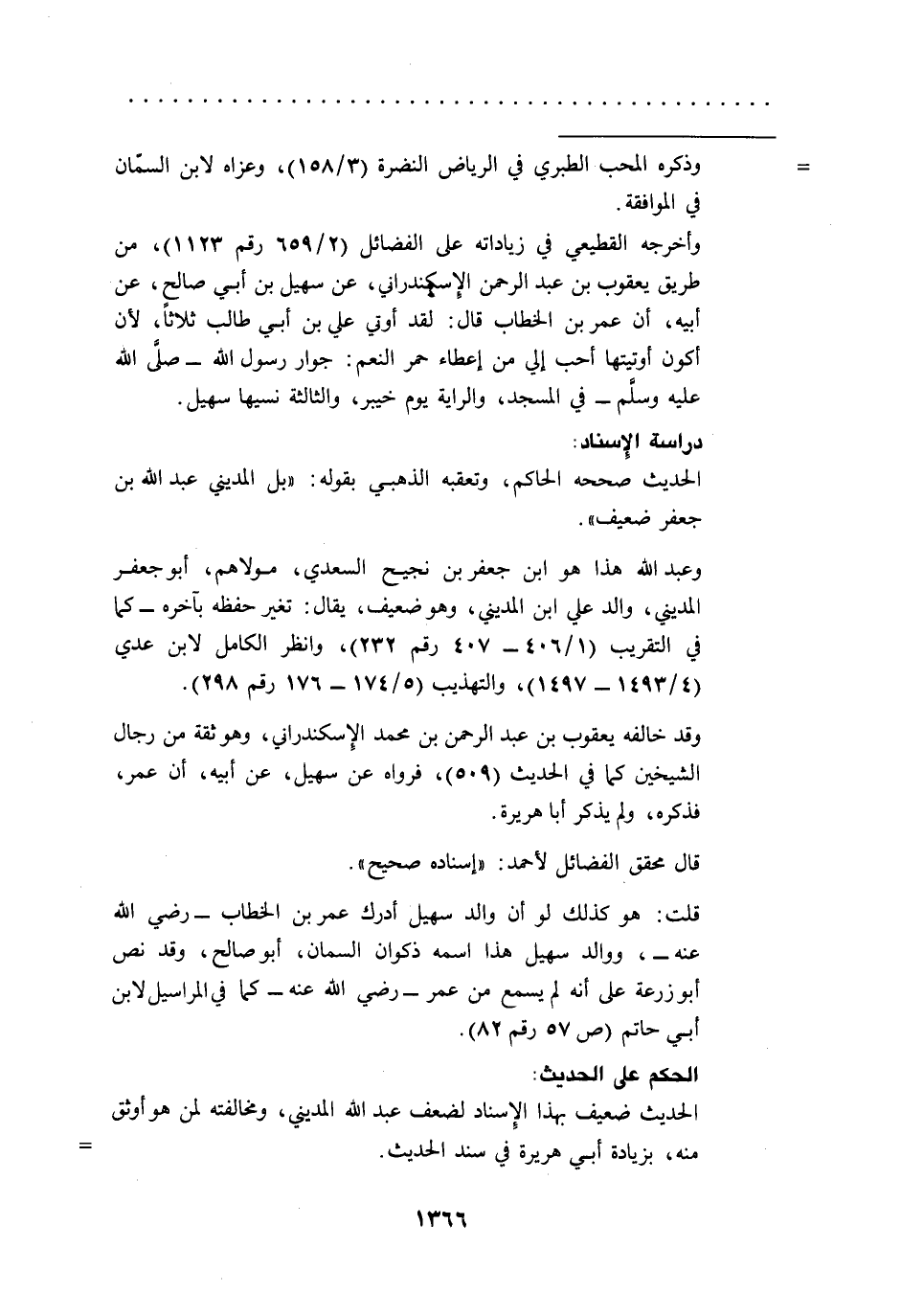 قلت: هو كذلك لو أن والد سهيل أدرك عمر بن الخطاب -رضي الله عنه-، ووالد سهيل هذا اسمه ذكوان السمان، أبو صالح، وقد نص أبو زرعة على أنه لم يسمع من عمر -رضي الله عنه -كما في المراسيل لابن أبي حاتم (ص 57 رقم 82).