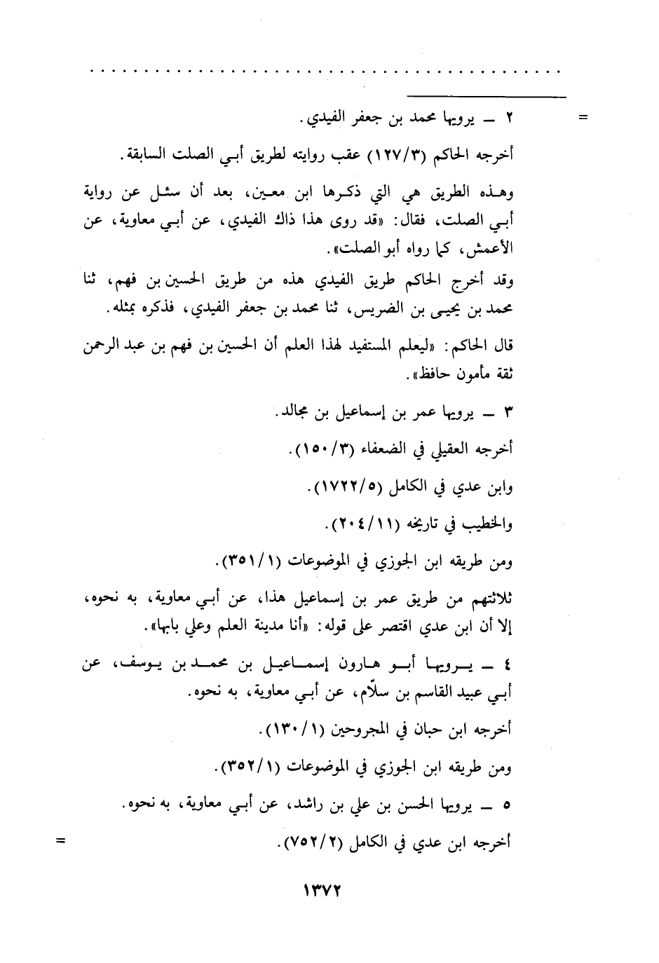 وهذه الطريق هي التي ذكرها ابن معين، بعد أن سئل عن رواية أبي الصلت، فقال: "قد روى هذا ذاك الفيدي، عن أبي معاوية، عن الأعمش، كما رواه أبو الصلت".