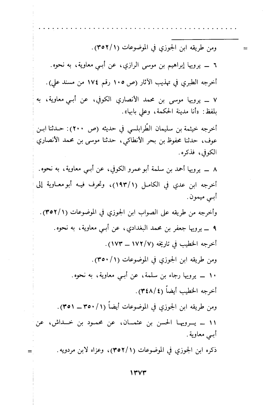 11 - يرويها الحسن بن عثمان، عن محمود بن خداش، عن أبي معاوية.