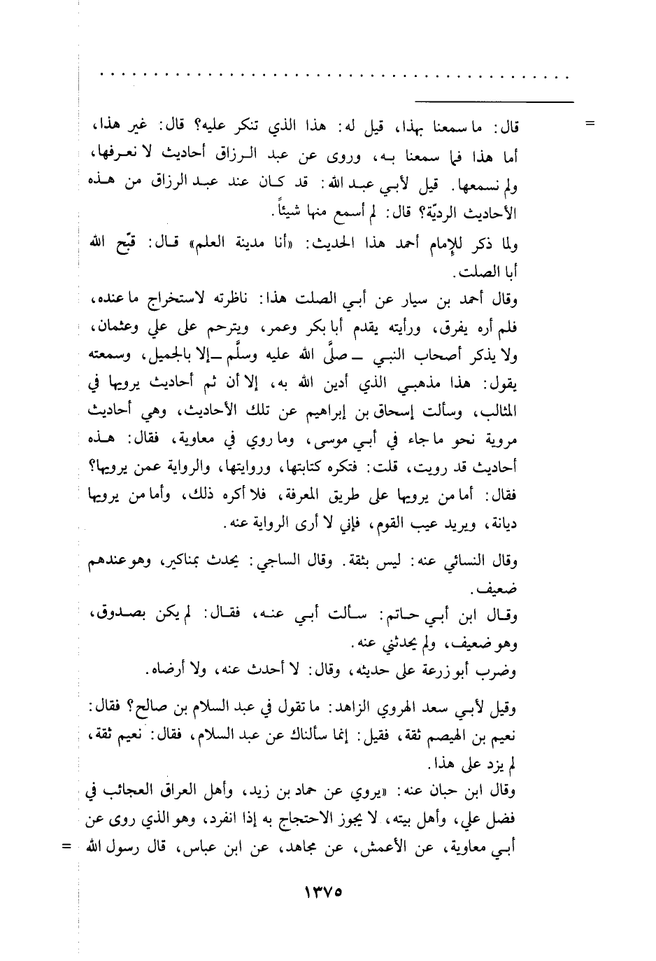 ولما ذكر للِإمام أحمد هذا الحديث: "أنا مدينة العلم" قال: قبّح الله أبا الصلت.