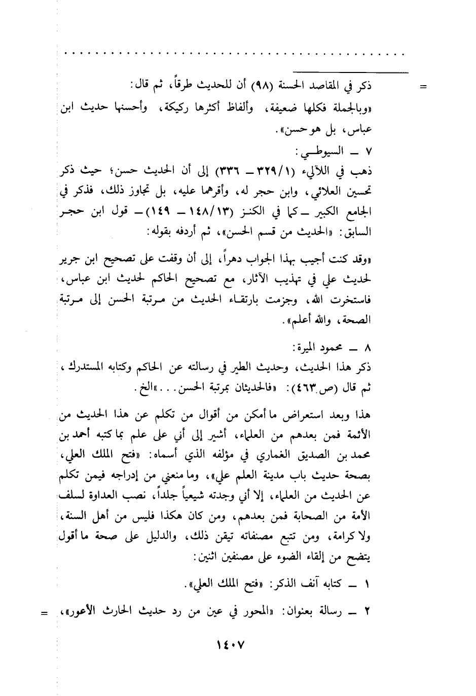 2 - رسالة بعنوان: "المحور في عين من رد حديث الحارث الأعور"، =