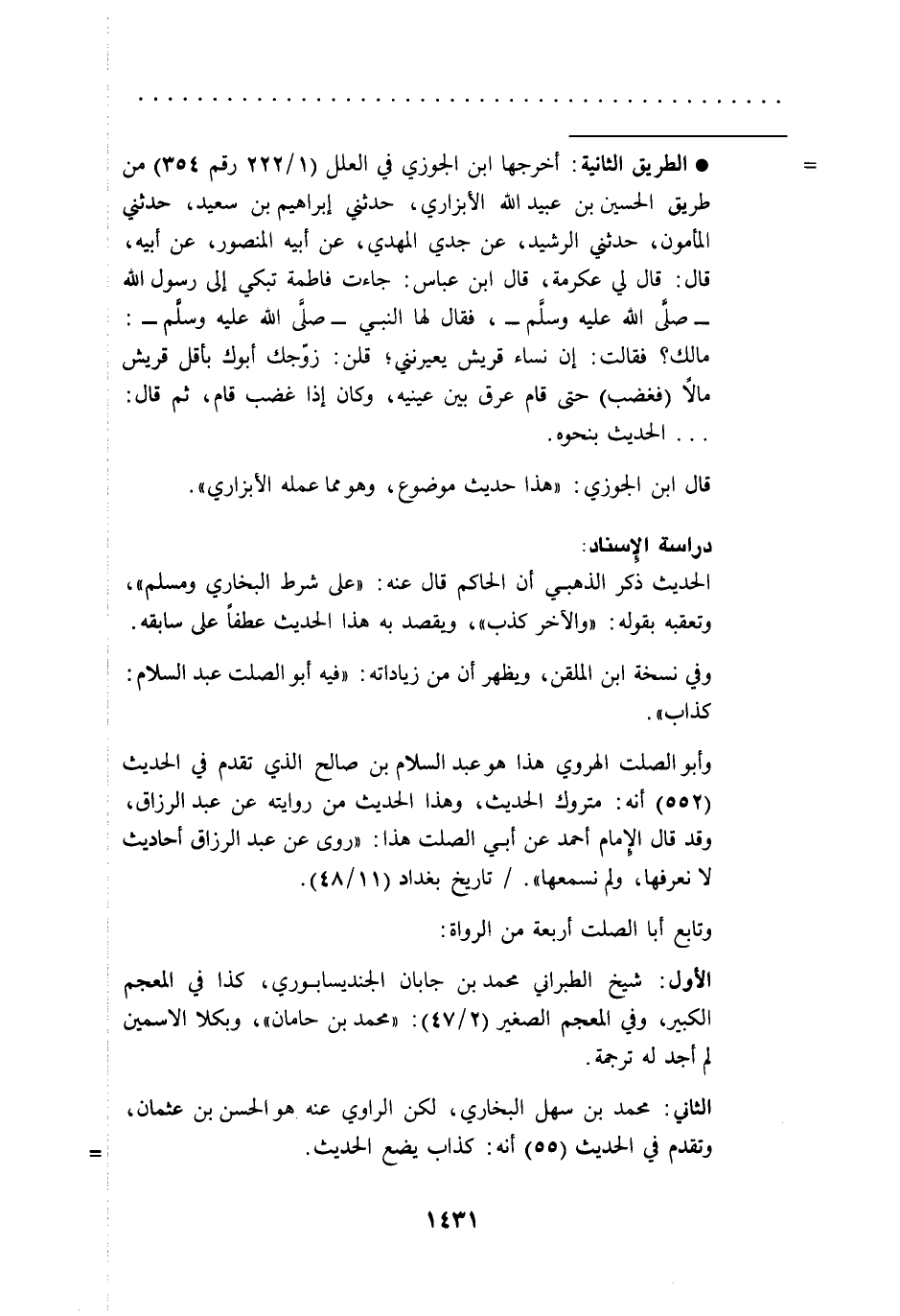 وفي نسخة ابن الملقن، ويظهر أن من زياداته: "فيه أبو الصلت عبد السلام: كذاب".
