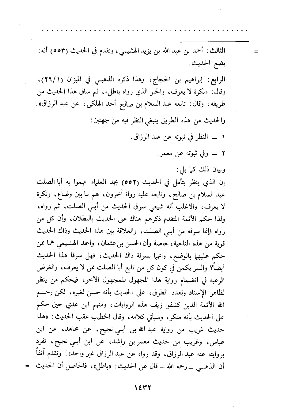 1 - النظر في ثبوته عن عبد الرزاق.