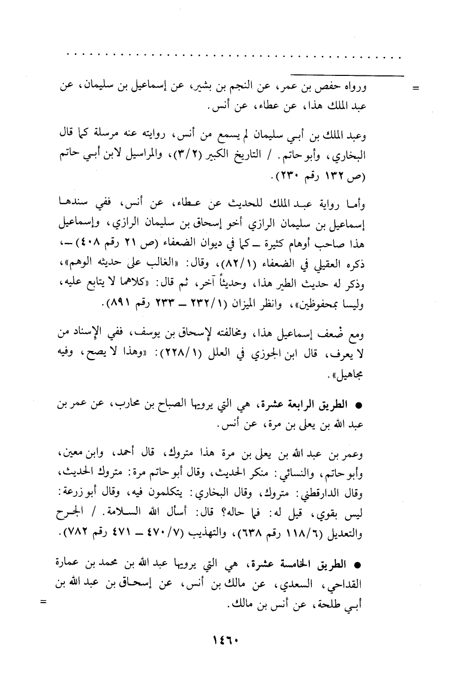 = ورواه حفص بن عمر، عن النجم بن بشير، عن إسماعيل بن سليمان، عن عبد الملك هذا، عن عطاء، عن أنس.