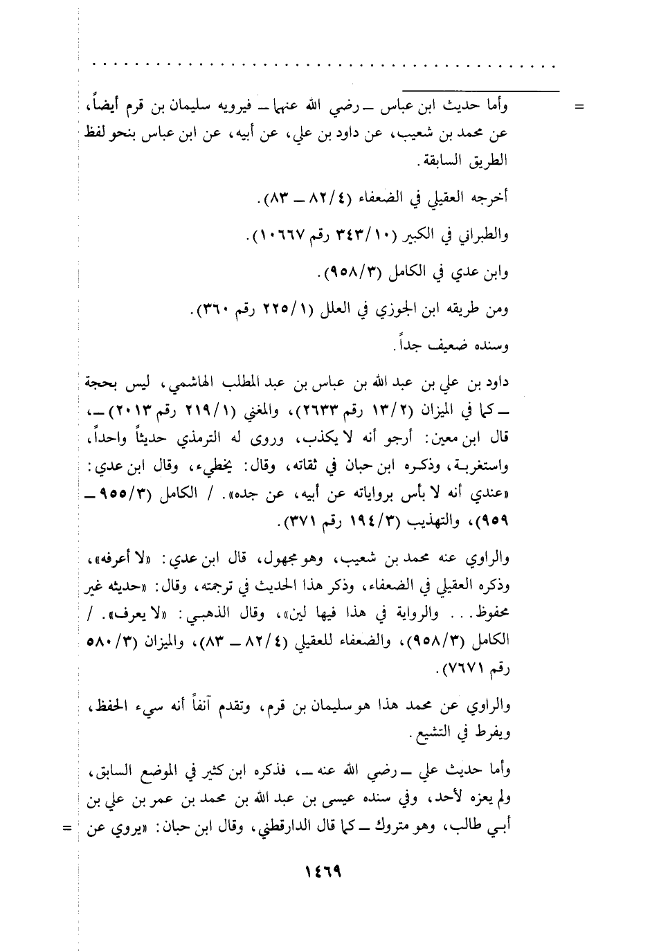 = وأما حديث ابن عباس -رضي الله عنهما- فيرويه سليمان بن قرم أيضاً، عن محمد بن شعيب، عن داود بن علي، عن أبيه، عن ابن عباس بنحو لفظ الطريق السابقة.
