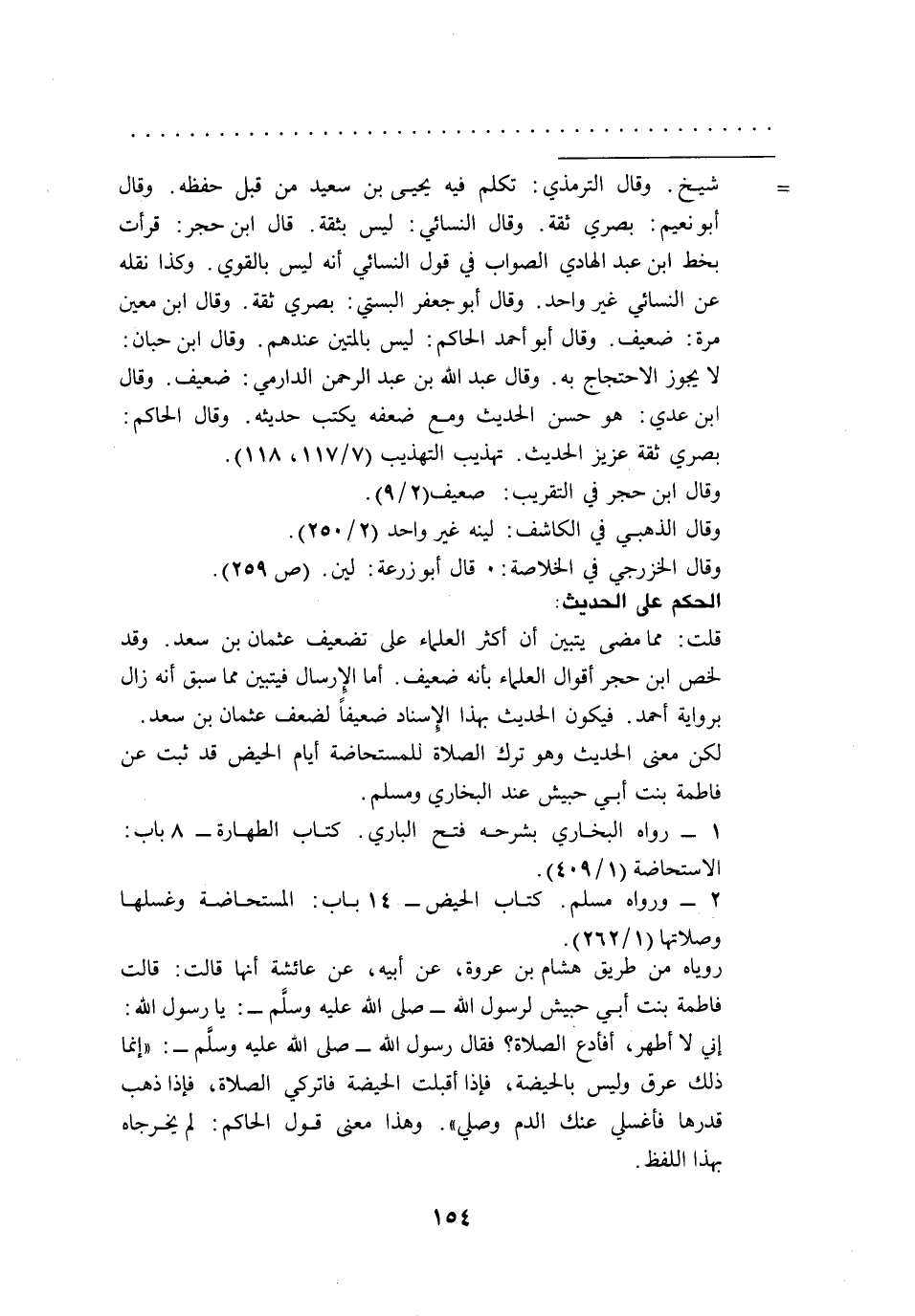 1 - رواه البخاري بشرحه فتح الباري. كتاب الطهارة- 8 باب: الاستحاضة (1/ 409).