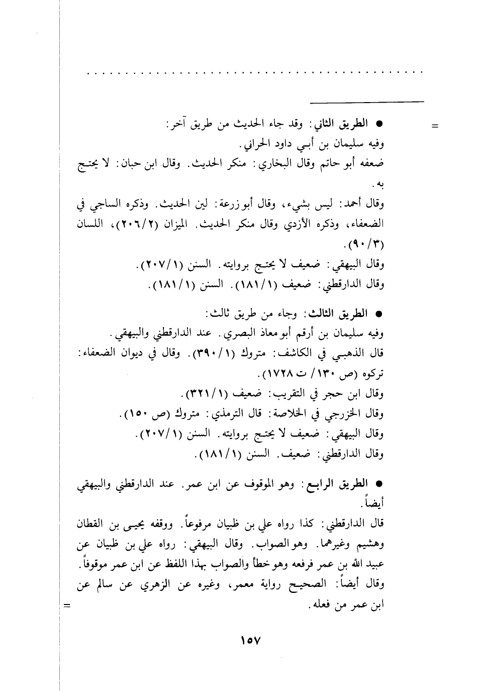 * الطريق الرابع: وهو الموقوف عن ابن عمر. عند الدارقطني والبيهقي أيضاً.