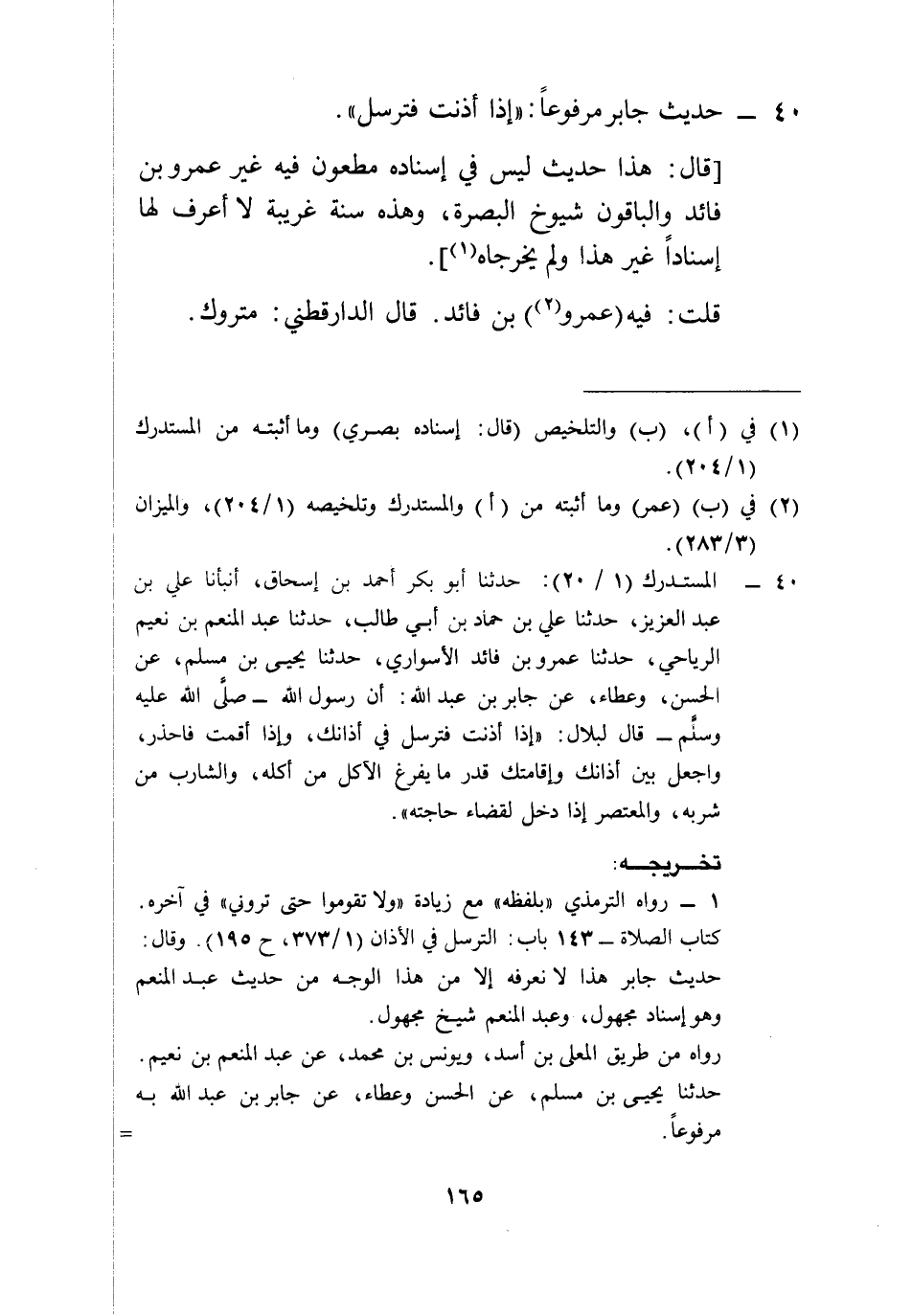 40 - حديث جابر مرفوعاً: "إذا أذنت فترسل".