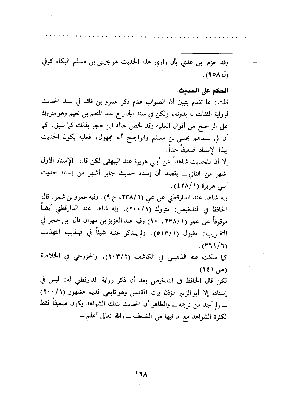 = وقد جزم ابن عدي بأن راوي هذا الحديث هو يحيى بن مسلم البكاء كوفي (ل 958).