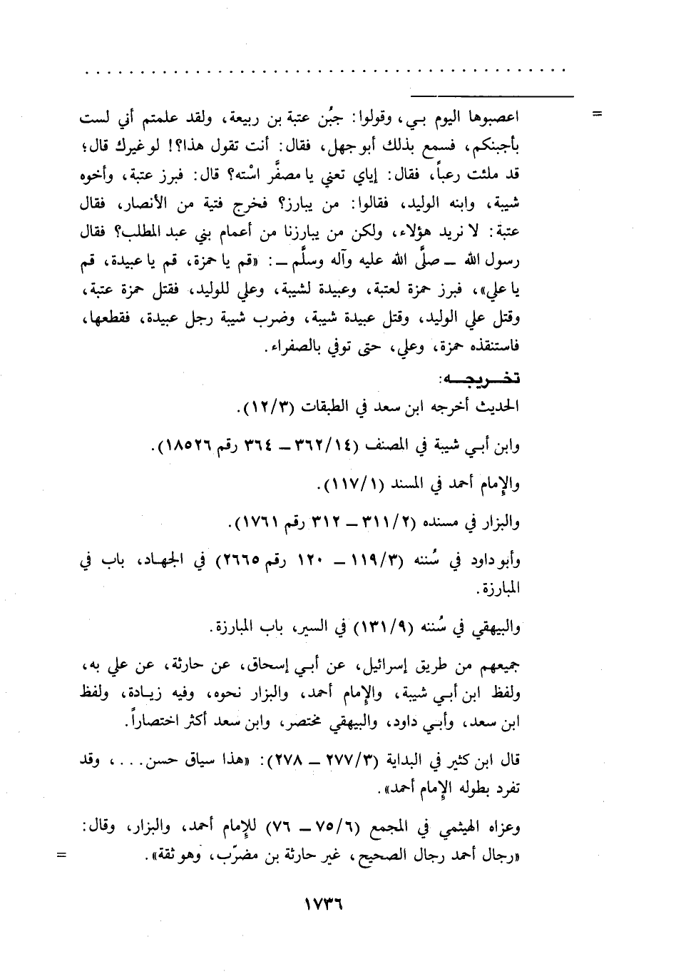 والبيهقي في سُننه (9/ 131) في السير، باب المبارزة.