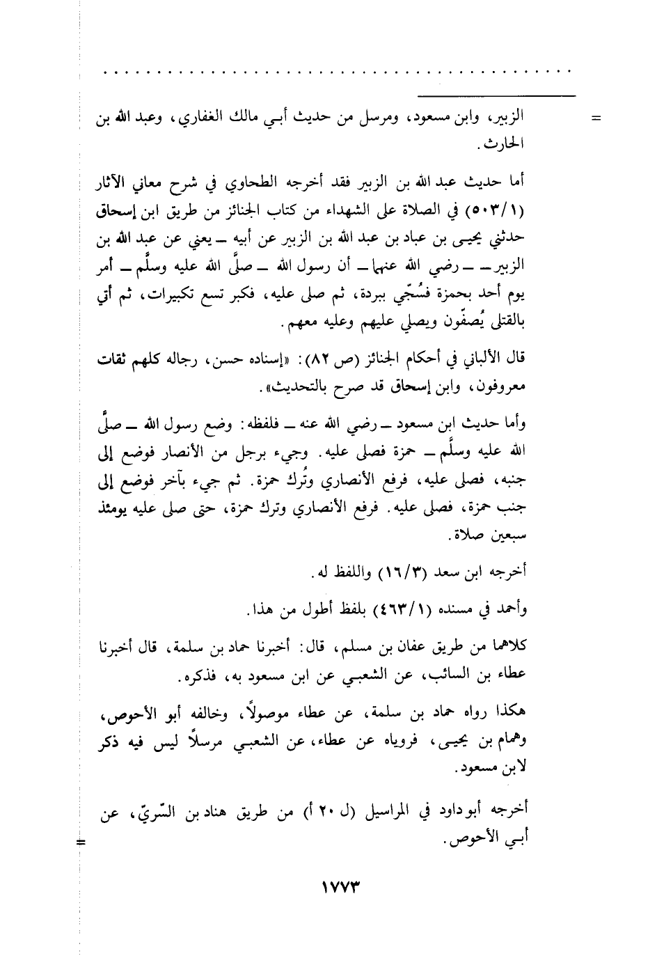 أما حديث عبد الله بن الزبير فقد أخرجه الطحاوي في شرح معاني الآثار (1/ 503) في الصلاة على الشهداء من كتاب الجنائز من طريق ابن إسحاق حدثني يحيى بن عباد بن عبد الله بن الزبير عن أبيه -يعني عن عبد الله بن الزبير-رضي الله عنهما- أن رسول الله -صلى الله عليه وسلم- أمر يوم أحد بحمزة فسُجّي ببردة، ثم صلى عليه، فكبر تسع تكبيرات، ثم أتي بالقتلى يُصفّون ويصلي عليهم وعليه معهم.