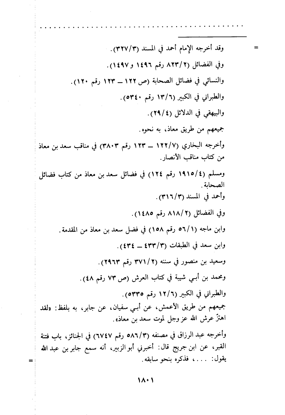 جميعهم من طريق الأعمش، عن أبي سفيان، عن جابر، به بلفظ: "لقد اهتز عرش الله عز وجل لموت سعد بن معاذ".