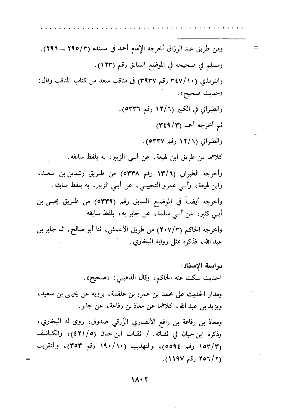 ومدار الحديث على محمد بن عمرو بن علقمة، يرويه عن يحيى بن سعيد، ويزيد بن عبد الله، كلاهما عن معاذ بن رفاعة، عن جابر.