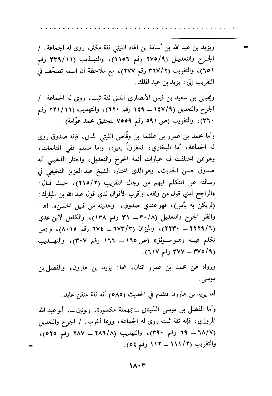 ورواه عن محمد بن عمرو اثنان، هما: يزيد بن هارون، والفضل بن موسى.