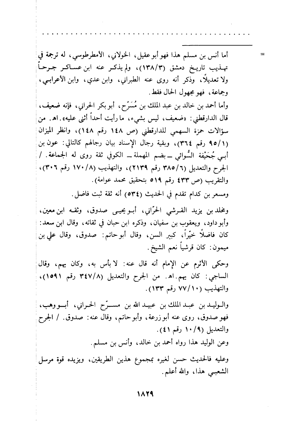 = أما أنس بن مسلم هذا فهو أبو عقيل، الخولاني، الأمطرطوسي، له ترجمة في تهذيب تاريخ دمشق (3/ 138)، ولم يذكر عنه ابن عساكر جرحاً ولا تعديلًا، وذكر أنه روى عنه الطبراني، وابن عدي، وابن الأعرابي، وجماعة، فهو مجهول الحال فقط.