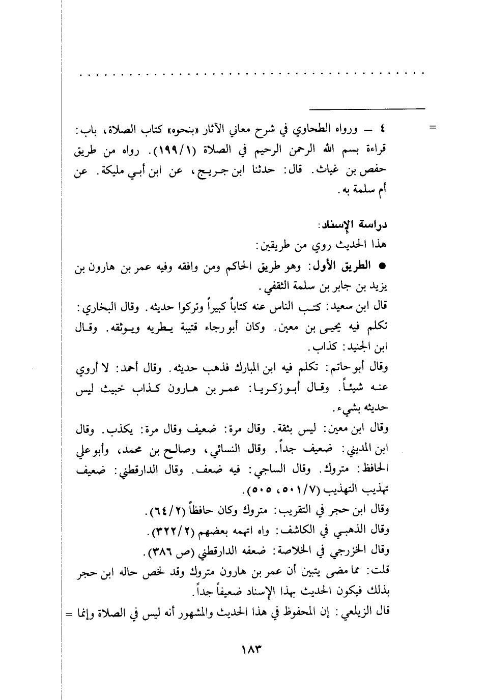 قلت: مما مضى يتبين أن عمر بن هارون متروك وقد لخص حاله ابن حجر بذلك فيكون الحديث بهذا الِإسناد ضعيفاً جداً.