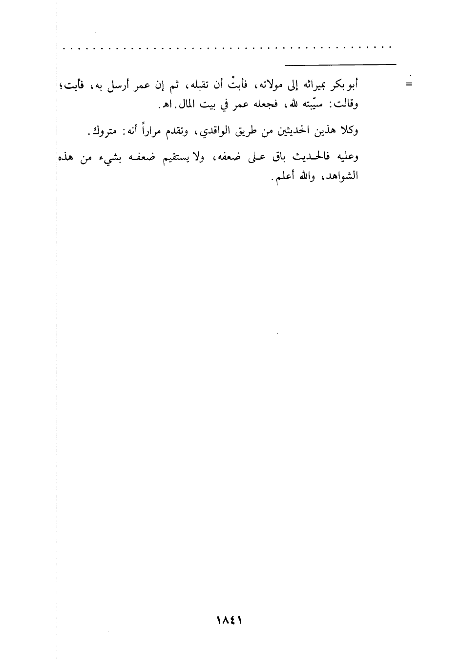 = أبو بكر بميراثه إلى مولاته، فأبتْ أن تقبله، ثم إن عمر أرسل به، فأبت؛ وقالت: سيّبته لله، فجعله عمر في بيت المال. اهـ.