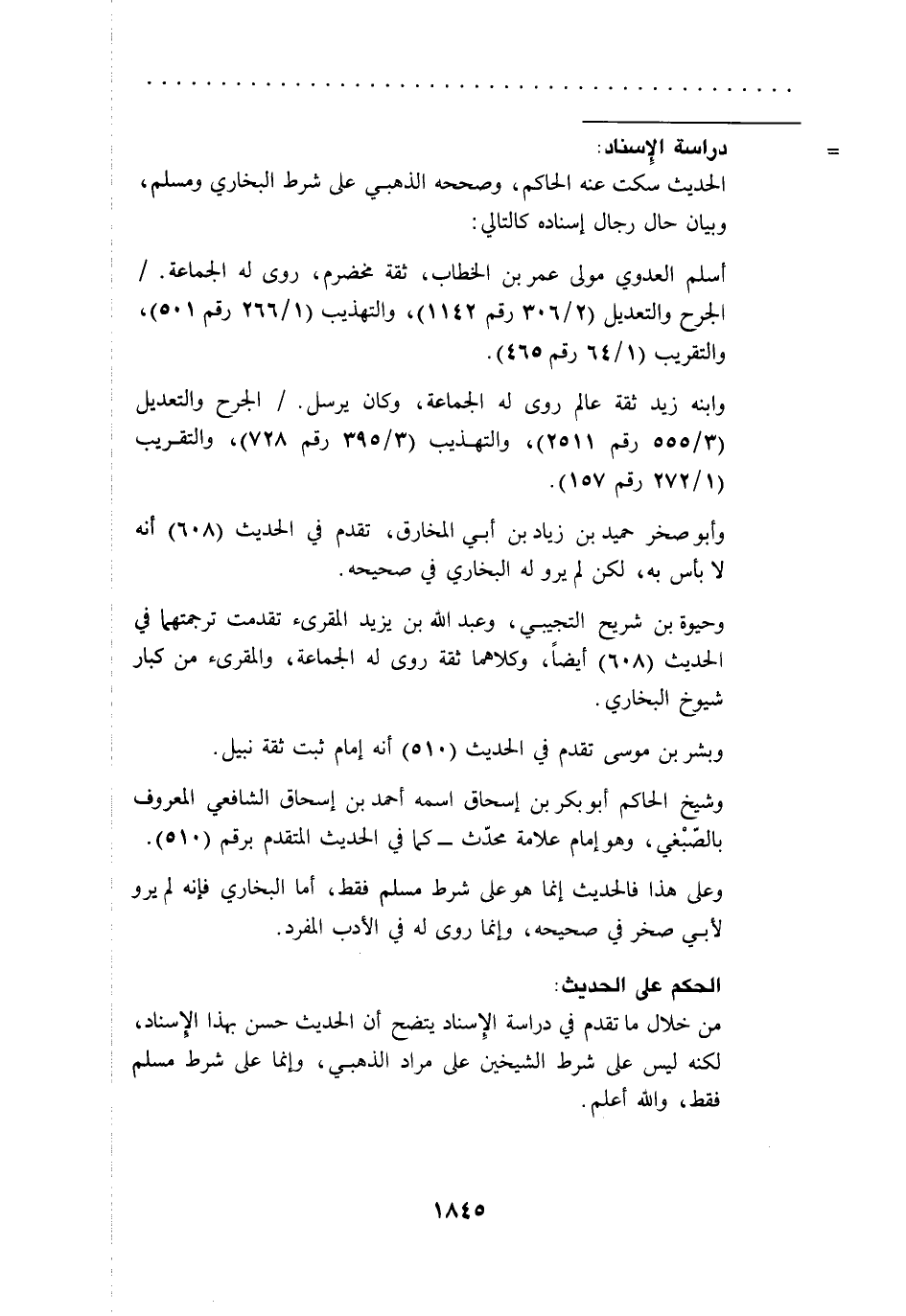 وعلى هذا فالحديث إنما هو على شرط مسلم فقط، أما البخاري فإنه لم يرو لأبي صخر في صحيحه، وإنما روى له في الأدب المفرد.