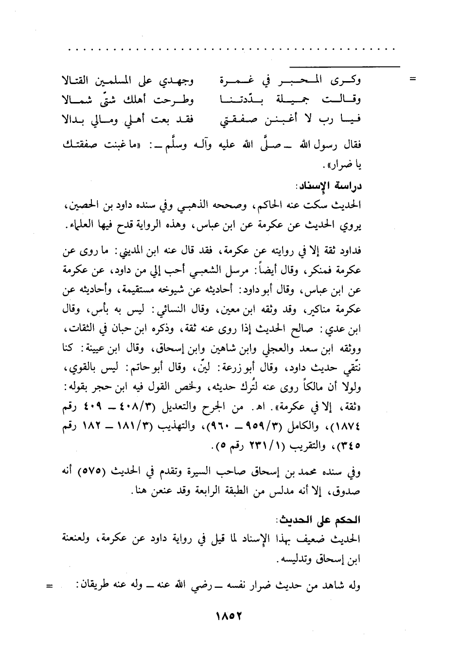 فداود ثقة إلا في روايته عن عكرمة، فقد قال عنه ابن المديني: ما روى عن عكرمة فمنكر، وقال أيضاً: مرسل الشعبي أحب إلي من داود، عن عكرمة عن ابن عباس، وقال أبو داود: أحاديثه عن شيوخه مستقيمة، وأحاديثه عن عكرمة مناكير، وقد وثقه ابن معين، وقال النسائي: ليس به بأس، وقال ابن عدي: صالح الحديث إذا روى عنه ثقة، وذكره ابن حبان في الثقات، ووثقه ابن سعد والعجلي وابن شاهين وابن إسحاق، وقال ابن عيينة: كنا نتّقي حديث داود، وقال أبو زرعة: لين، وقال أبو حاتم: ليس بالقوي، ولولا أن مالكاً روى عنه لترك حديثه، ولخص القول فيه ابن حجر بقوله: "ثقة، إلا في عكرمة". اهـ. من الجرح والتعديل (3/ 408 - 409 رقم 1874)، والكامل (3/ 959 - 960)، والتهذيب (3/ 181 - 182 رقم 345)، والتقريب (1/ 231 رقم 5).